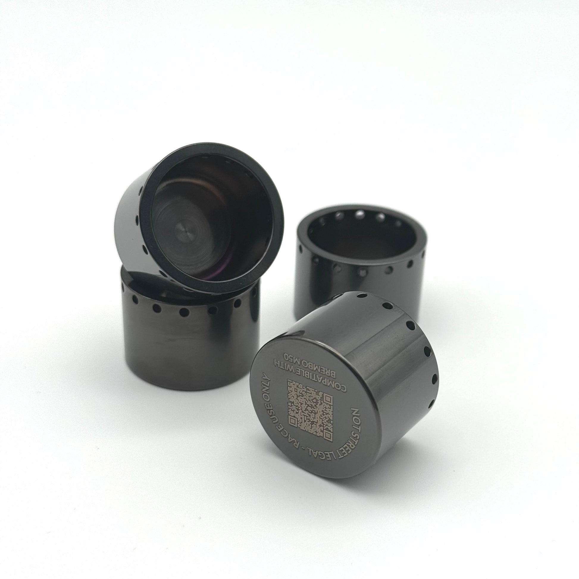 Diese Bremskolben werden aus hochfestem Titan gefertigt und mit einer DLC (Diamond Like Carbon) Beschichtung versehen. Das Resultat: geringes Gewicht, hohe Festigkeit sowie optimale Reib- und Verschleißeigenschaften. Dadurch bleibt die Bremsleistung konstant, die Dosierbarkeit verbessert sich und die Lebensdauer der Komponenten steigt. Ein weiterer Vorteil: Das Schleifen des Rades bei überhitzter Bremse wird deutlich reduziert – der Druckpunkt bleibt stabil und präzise.